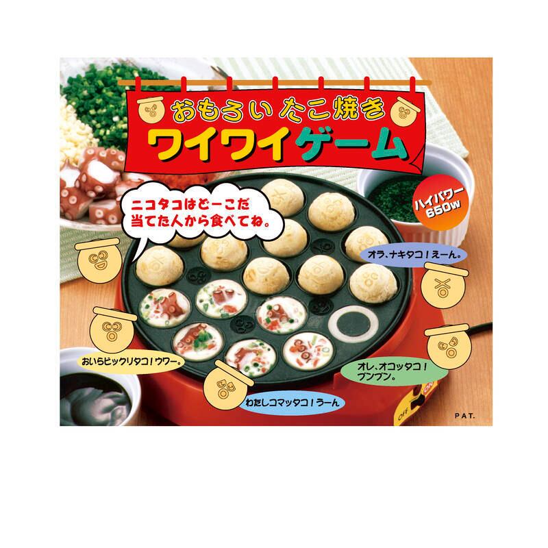 5種類のかわいい表情のたこ焼きができる。作って楽しい、見て面白い、ゲームもできる。●直径3.5cmのたこ焼きが一度に17個できます。●たこ焼きを裏返しやすいフッ素コートプレートです。●5種類のかわいい「表情焼き」ができます。