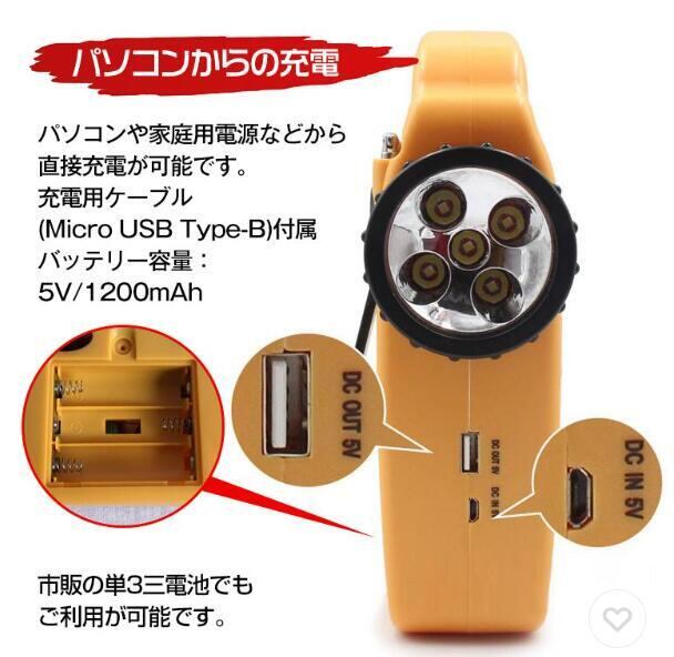 電源:ダイナモ手回し充電式