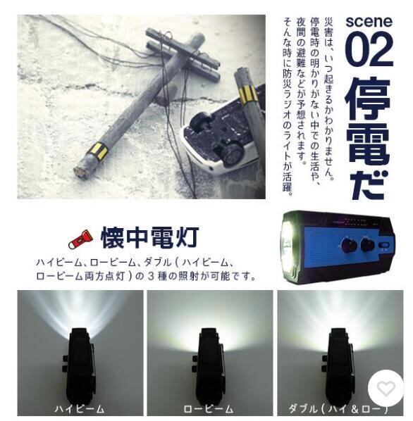 多機能防災ラジオ 全6色 〔防水 AM FM 4000mAh ソーラー 手回し USB 充電 LED ライト 懐中電灯
