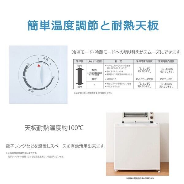 ●31L驚きの収納力、8段階温度調節、耐熱性天板でスペースを有効活用、霜取り用ヘラ・製氷皿付き