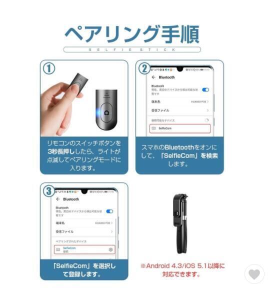 手持ちの使用だけではなく、Bluetoothリモコンと三脚一体の高級設計でBluetoothリモコンは本体から取り外し、遠距離でコントロールできます。集合写真などに最適です!
