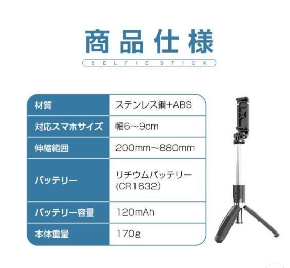 自撮り棒 三脚付き セルカ棒 Bluetooth リモコン付き スマホ 自撮り 三脚スタンド 伸縮調節 360度回転